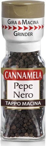 Cannamela Pepe Nero Tappo Macina to wyselekcjonowany z najlepszych upraw pieprz ziarnisty. w opakowaniu z młynkiem. Pieprz to podstawowa przyprawa każdej kuchni. Już odrobina mielona pieprzu wzmocni smak smak potrawy nutką pikanterii. Pieprz w ziarnach zmielisz tuż przed użyciem, aby wzbogacić smak potraw.