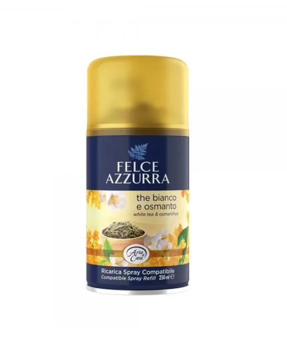 Włoski, uniwersalny odświeżacz powietrza! Odświeżacz w postaci wymiennego wkładu doskonale oczyszcza powietrze, niweluje nieprzyjemne zapachy i wypełnia pomieszczenie przyjemnym, białej herbaty i osmantusa.